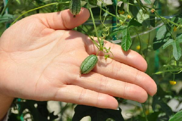 此外,每100克的“拇指西瓜”含12.6%的蛋白质,16.30%纤维和56.8%的碳水化合物,外表与普通西瓜无异,长3厘米、直径2厘米,外皮柔滑细嫩,内瓤为青绿色,口感如黄瓜般清脆爽口,可以直接食用。
