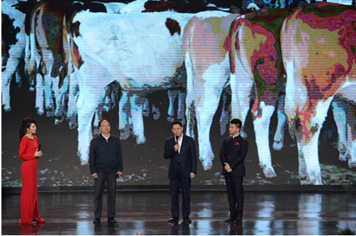 一、省部长联合推介品牌农产品专场活动,“蜀宣花牛”引轰动。 “我今天就是来'吹牛'的!”11月4日晚10时,昆明国际会展中心,四川省副省长杨兴平带着一头“蜀宣花牛”大玩偶登台引爆全场,成为当晚活动的最大高潮。这是本届农交会首次精心设计的省部长推介品牌农产品专场特色活动,由各省政府领导联合登台,通过讲品牌故事的方式向公众推介本省优质区域品牌农产品。杨兴平副省长热情地向来自全国30多个省市自治区的领导嘉宾、农业代表和客商推介“四川造”特色农产品品牌。“蜀宣花牛”是建国以来中国第六个、黄河以南首次培育出的乳肉兼用牛新品种,填补了中国南方、四川无培育牛品种的空白,是中国畜牧业史上的一项重大科技成果,成为全国畜牧产业中代表四川品质的一张名片。
